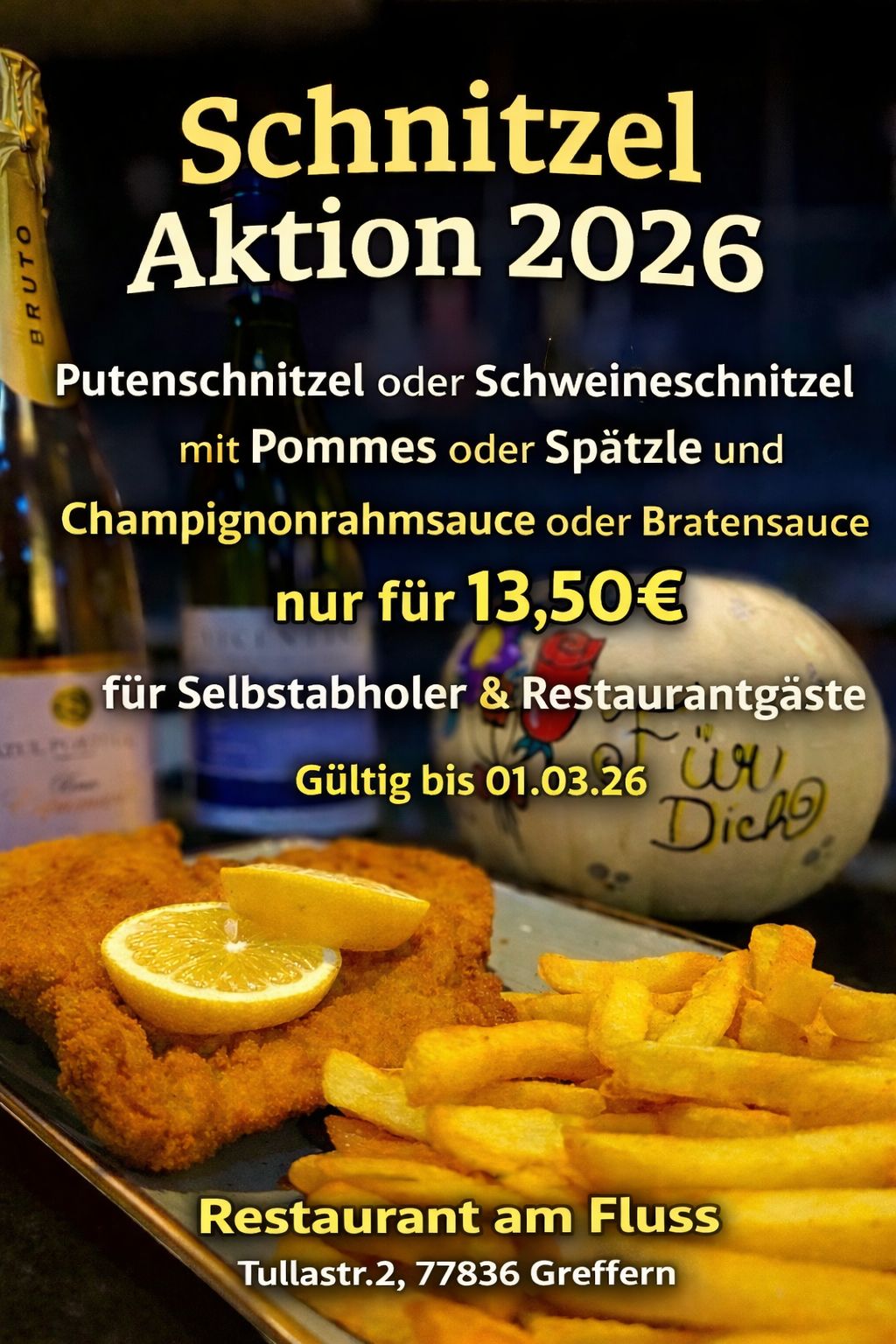 Unter der Telefonnummer +49 7227 3522 nehmen wir gerne Ihre Reservierungen für den Innenbereich oder Ihre Bestellung zur Abholung/Lieferung entgegen. Der Außenbereich steht leider nicht für Reservierungen zur Verfügung.