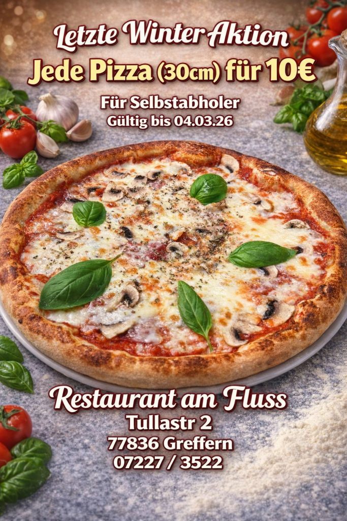 Jede Pizza 10€ Unsere letzte Winter Aktion bis 04. März 2026: Jede Pizza (30cm) für Selbstabholer für 10€